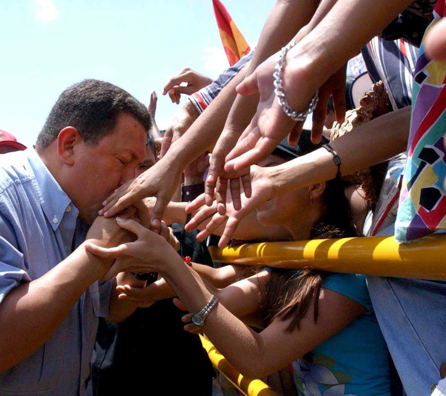 Hugo Chávez había puesto en el bolsillo de su chaqueta una constitución, un pañuelo, y el cristo que desde 2002 le acompañaba. Estaba al pie de la escalera de una tarima en la avenida Bolívar sobre la que deslizaba el agua de la intensa lluvia de ese jueves de octubre. A pesar del impermeable que le cubría, algunas gotas quisieron colarse por el cuello de su guerrera para recorrer su espalda y atraparse en la estructura del chaleco antibalas; otras fueron detenidas por los rizos de su cabello, pero Chávez sólo pestañaba cuando las gotas le daban en la cara.